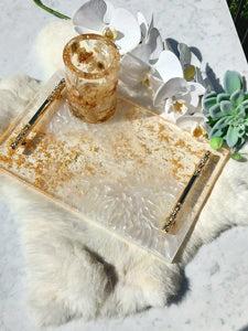 Resin Platter with pearlescent white and 24k Gold Leaf with designer gold handles - Sold - orders taken  - Regular price